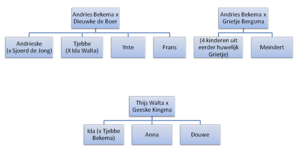 Klik op onderstaande waaier om om de voorvaderen van Anna Bekema te vergroten of gebruik geneanet.org voor een interactieve manier om meer over deze voorouders te zien, met Tjebbe Andries Bekema als startpunt.