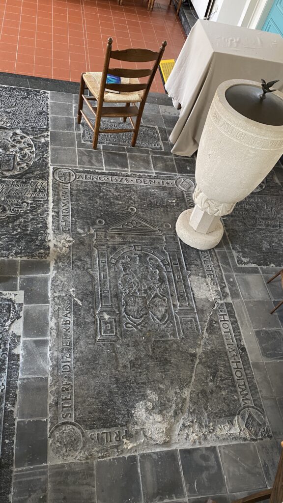 De scribe van Oudega die zo vriendelijk was om voor ons de kerk te openen, bracht kopietjes mee van een boek over Oudega en omstreken getiteld ‘Tussen Brek en Skuttel’ van de hand van Johannes Walinga. Hierin het mooie verhaal van het jongetje Ho Ockes dat op de vlucht voor de reformatie onderdak vond bij de katholieke Hoytema’s. Het stierf op 10-jarige leeftijd en kreeg daar in Idzega een katholieke begrafenis. Hoe het kan dat er in Idzega nog een katholieke mis mogelijk was, is te lezen in het boek: